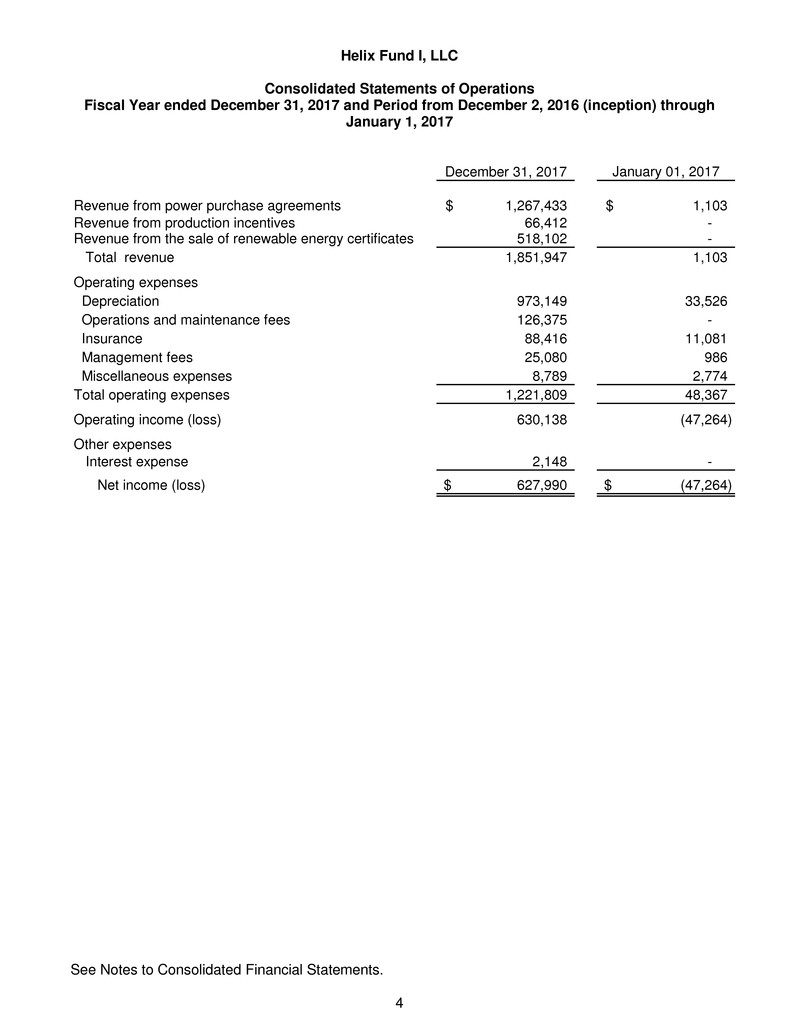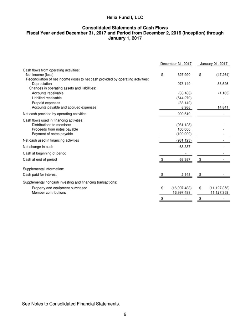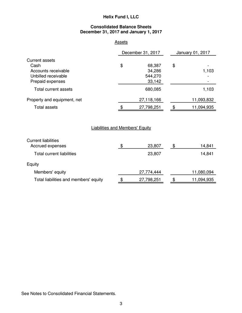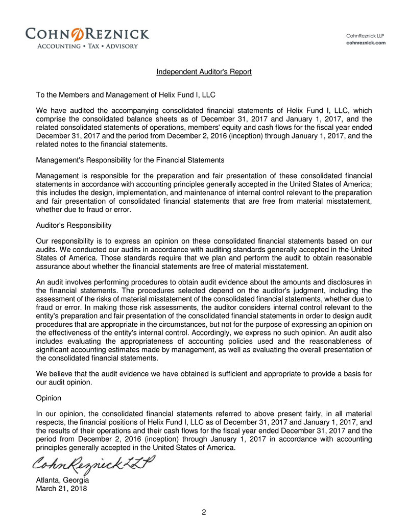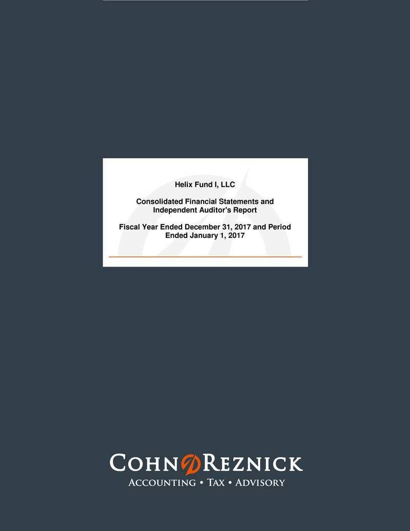 respects, the financial positions of Helix Fund I, LLC as of December 31, 2017 and January 1, 2017, and