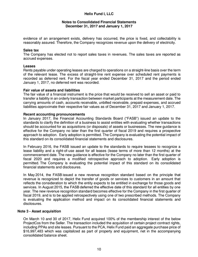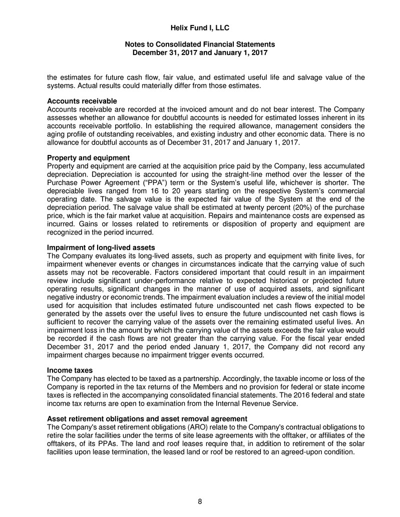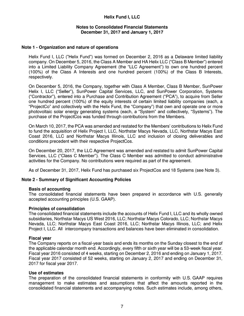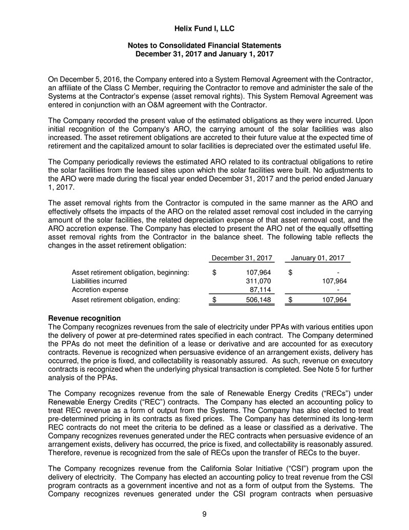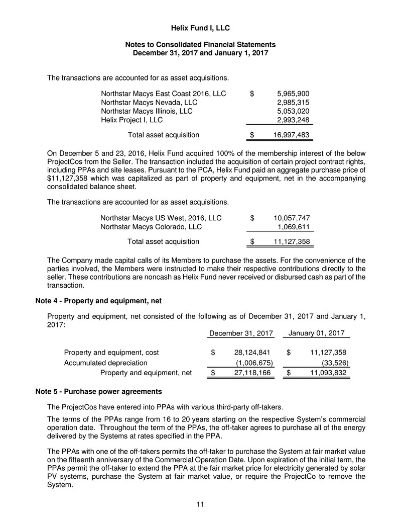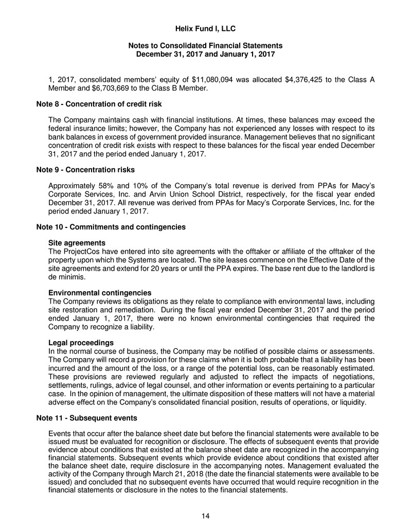 respects, the financial positions of Helix Fund I, LLC as of December 31, 2017 and January 1, 2017, and