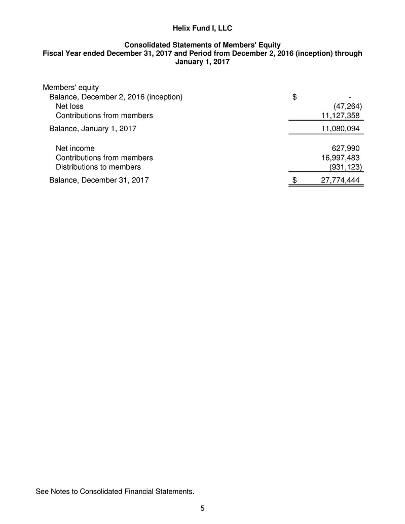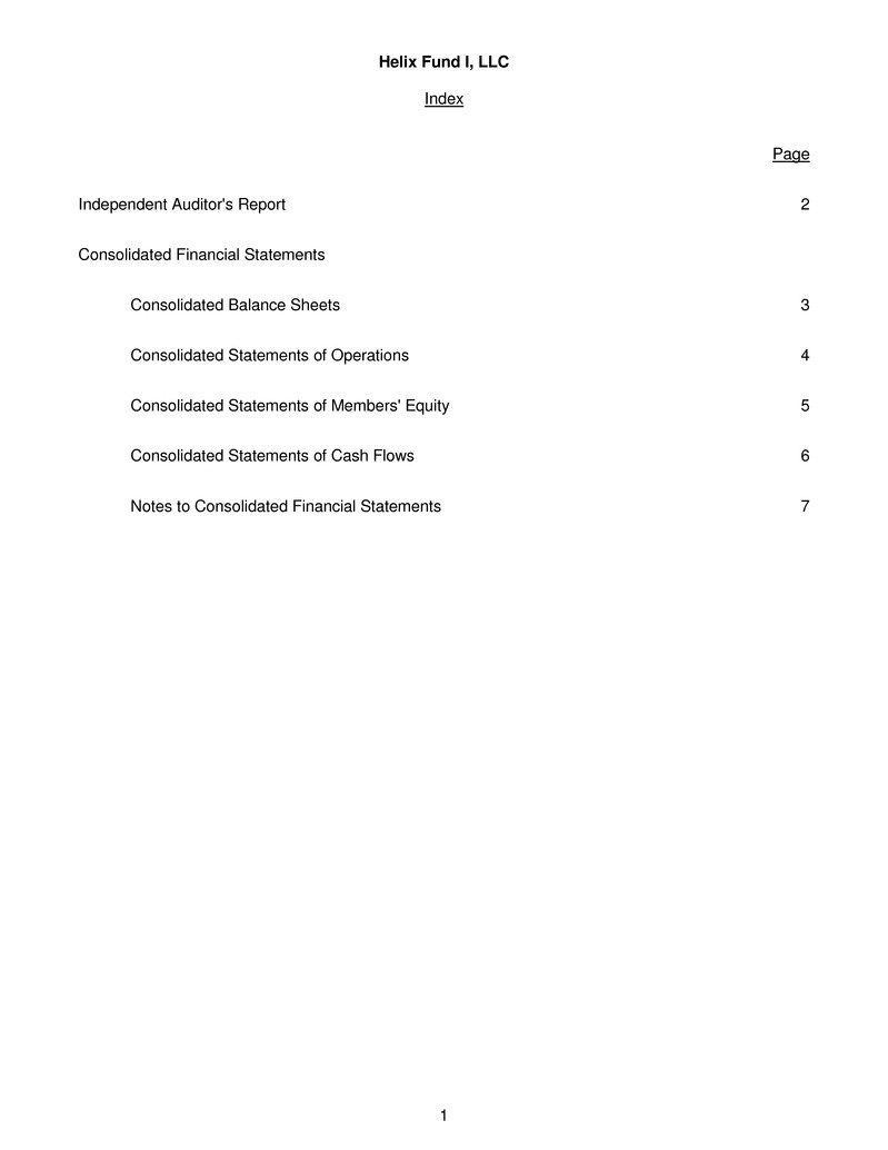 We have audited the accompanying consolidated financial statements of Helix Fund I, LLC, which