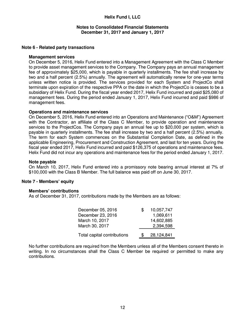 fiscal year ended 2017, Helix Fund incurred and paid $126,375 of operations and maintenance fees.