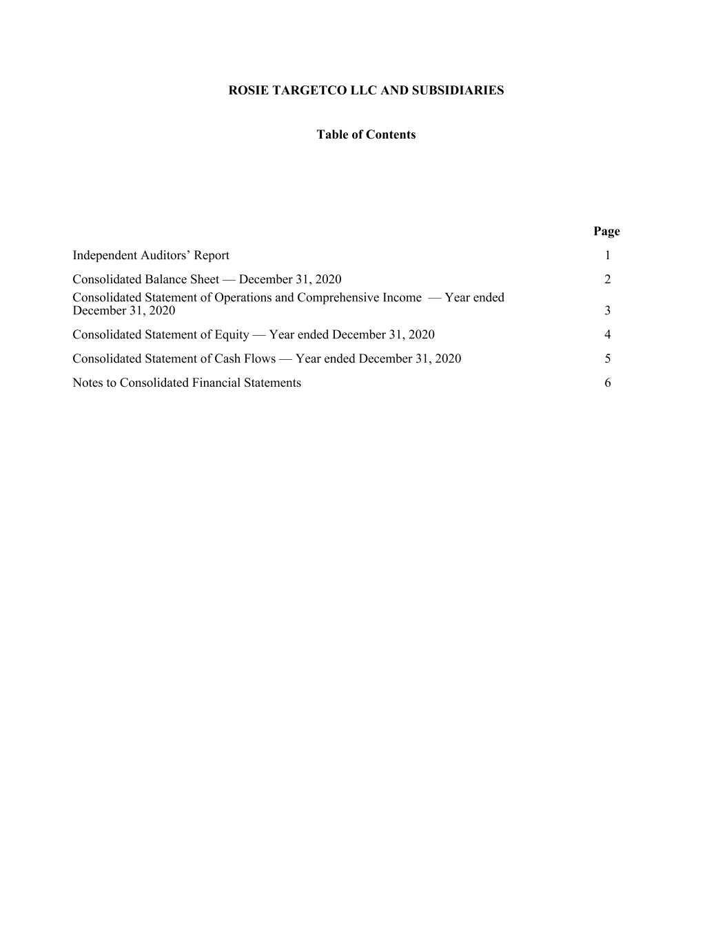 ROSIE TARGETCO LLC AND SUBSIDIARIES Table of Contents Page Independent Auditors’ Report 1 Consolidated Balance Sheet — December 31, 2020 2 Consolidated Statement of Operations and Comprehensive Income — Year ended December 31, 2020 3 Consolidated Statement of Equity — Year ended December 31, 2020 4 Consolidated Statement of Cash Flows — Year ended December 31, 2020 5 Notes to Consolidated Financial Statements 6