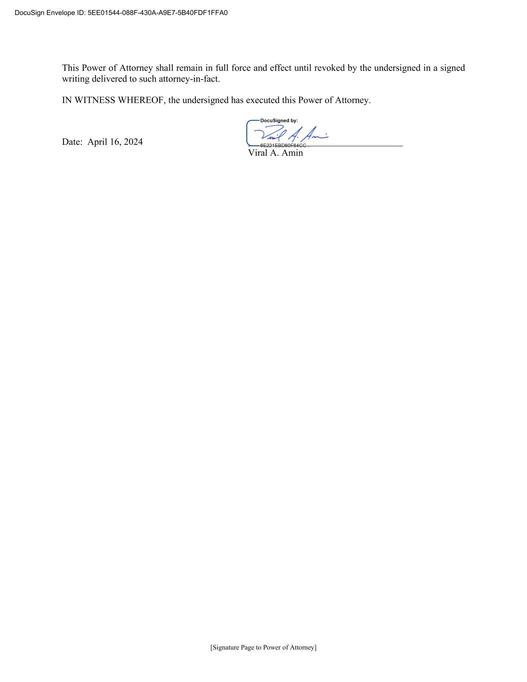 [Signature Page to Power of Attorney] This Power of Attorney shall remain in full force and effect until revoked by the undersigned in a signed writing delivered to such attorney-in-fact. IN WITNESS WHEREOF, the undersigned has executed this Power of Attorney. Date: April 16, 2024 Viral A. Amin DocuSign Envelope ID: 5EE01544-088F-430A-A9E7-5B40FDF1FFA0